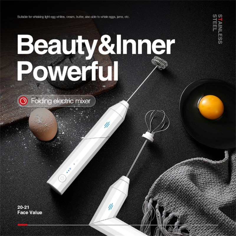 Elektrisk mjölkskummare i rostfritt stål, hopfällbar visp med 3 utbytbara vispar - Vit