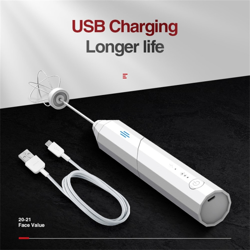 Mjölkskummare Elektrisk mjölkskum rostfri visp med 3 utbytbara huvuden - Vit