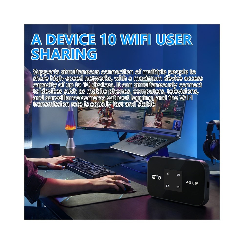 【Bärbar internetåtkomst】Kompakt mobil router omvandlar 4G LTE-mobilnätverk till höghastighets-Wi-Fi-hotspot, vilket ger internetåtkomst var som helst med mobiltäckning.