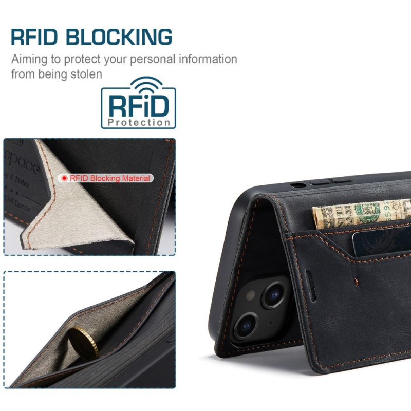 AUTSPACE A01 RFID Blocking Retro Plånboksfodral iPhone 13 - Svart
