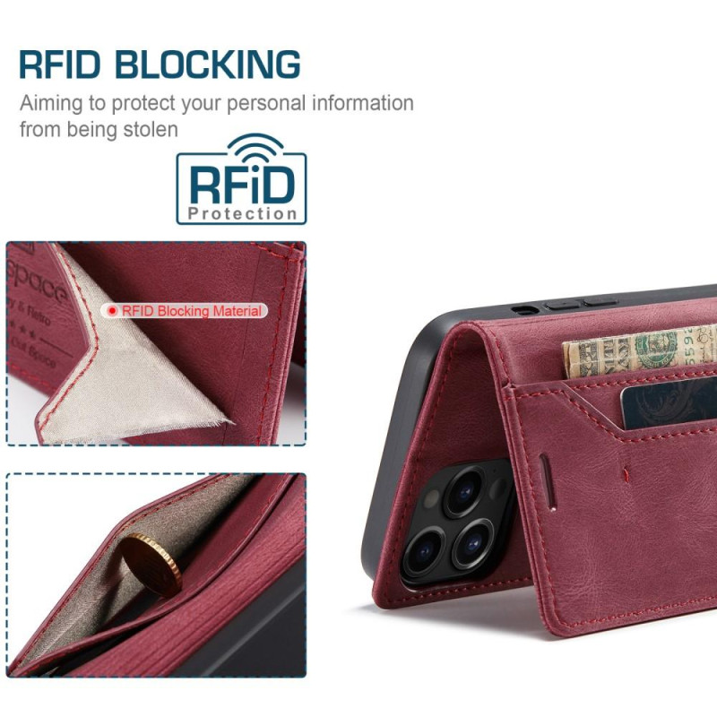 AUTSPACE A01 RFID Blocking Retro Plånboksfodral iPhone 13 Pro - Röd