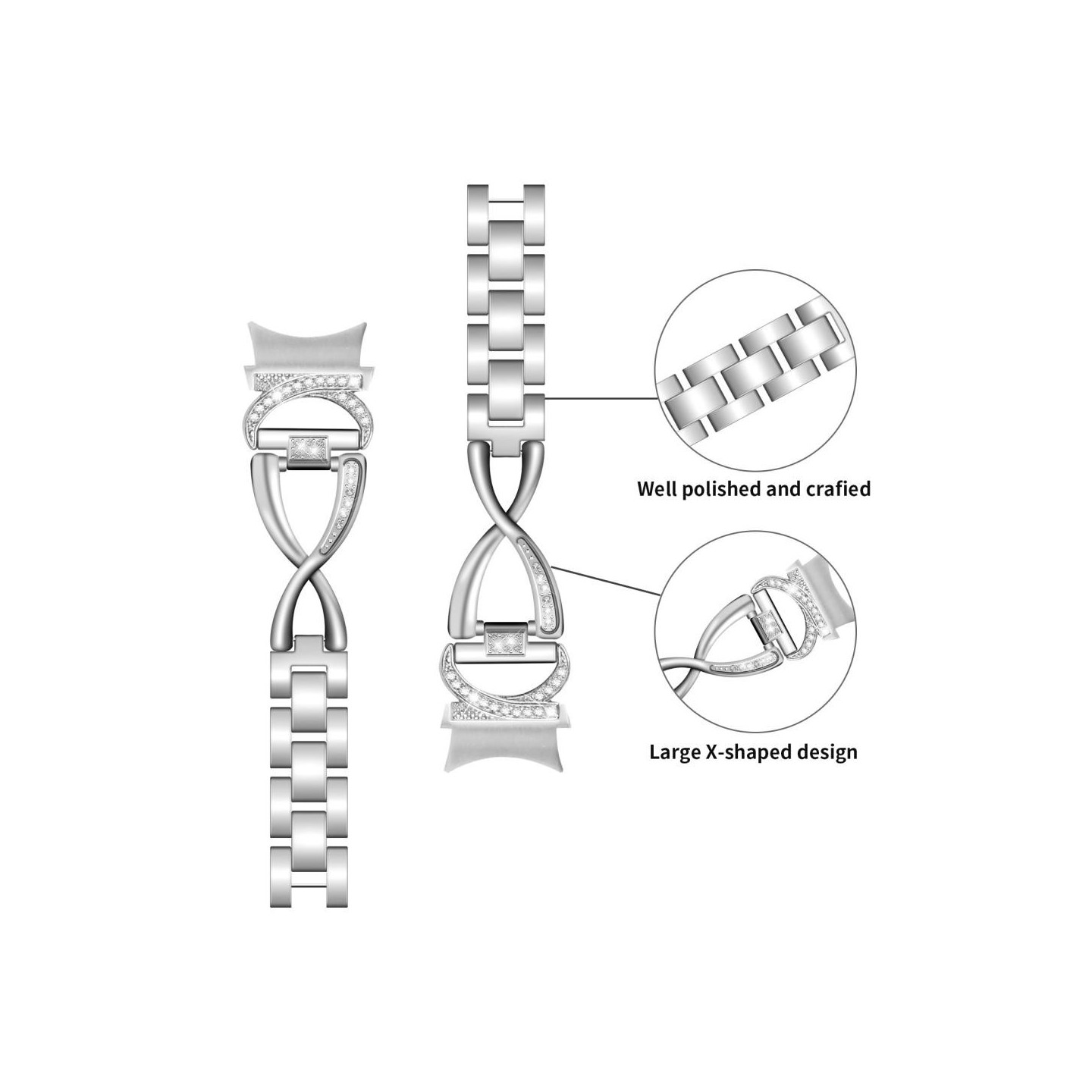 Klockband för Samsung Galaxy Watch6 40mm 44mm / Watch6 Classic 43mm 47mm / Watch 5 40mm 44mm / Watch4 40mm 44mm Strass Decor Alloy Armband with Connector - Silver Klockarmband i legering, slät och utsökt, bekväm att bära
