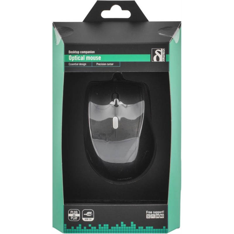 DELTACO optisk mus, 4 knappar med scroll, ergonomisk form