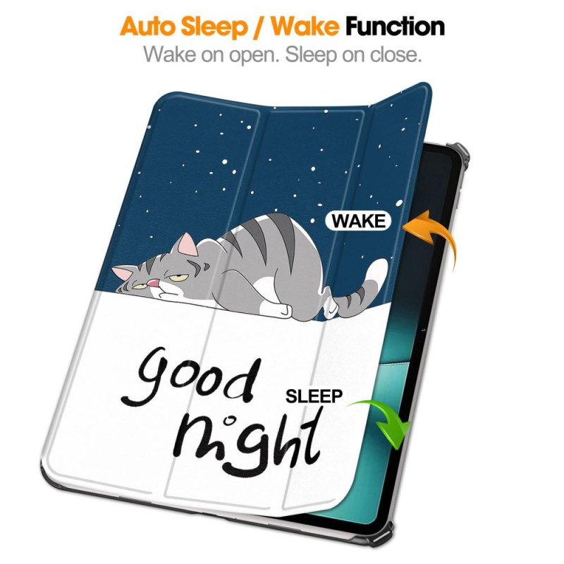 Tablettfodral med mönstertryck till OnePlus Pad PU-läder Tri-fold stativ Anti-drop tablettskydd - Cat Detta tabletfodral har högkvalitativt PU-läder + PC med fina detaljer, vilket gör att det känns mjukt och känsligt vid beröring. Det trevikta locket med stöd för dubbla vinklar erbjuder ett robust och mångsidigt stativ för visning och skrivning.