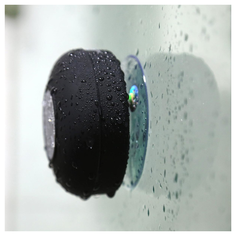 Liten Bluetooth Högtalare annpassad för badrum, vattenttät och med sugpropp för att kunna fästa på te.x kakel spegel eller annan plan yta.