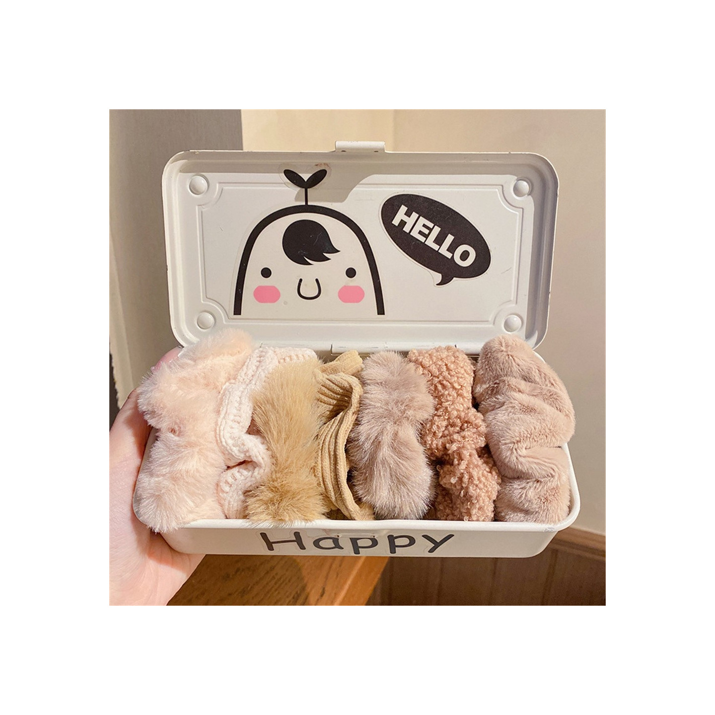 Plyschiga hårsnoddar 7 st. Elastiska hårsnoddar i tyg, hästsvanshållare för höst/vinter, present till håraccessoarer - Coffee