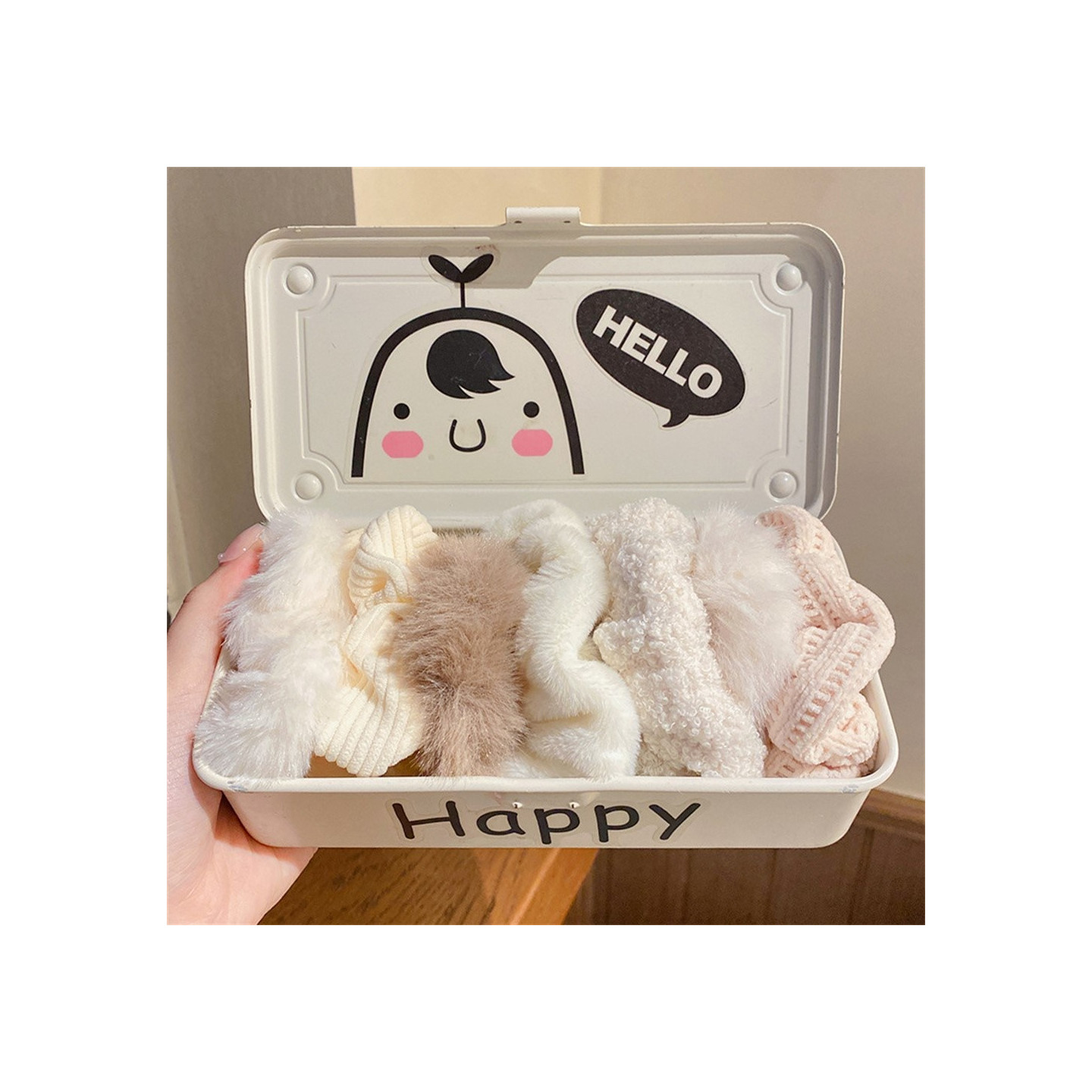 Plyschiga hårsnoddar 7 st. Elastiska hårsnoddar i tyg, hästsvanshållare för höst/vinter, present till håraccessoarer - Beige