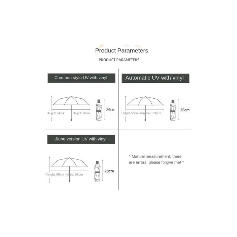 Automatiskt paraply: Fällbart paraply har en autoöppningsfunktion, du behöver inte pilla med paraplyet när det regnar. Ergonomiska handtag med ringar ger komfort att hålla