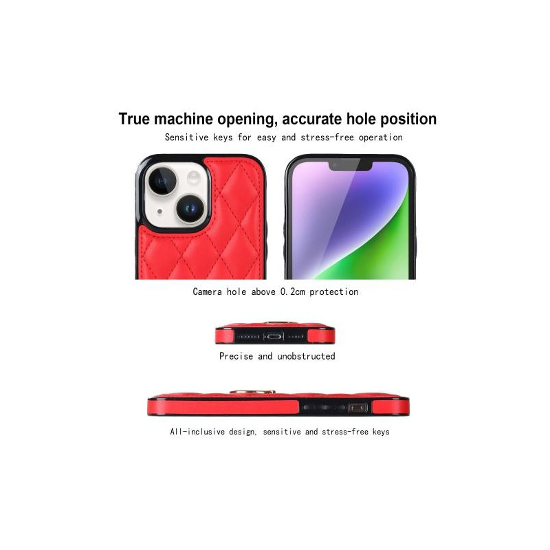 iPhone 14 Rhombus Grid Mönster Skal FingerRing - Röd