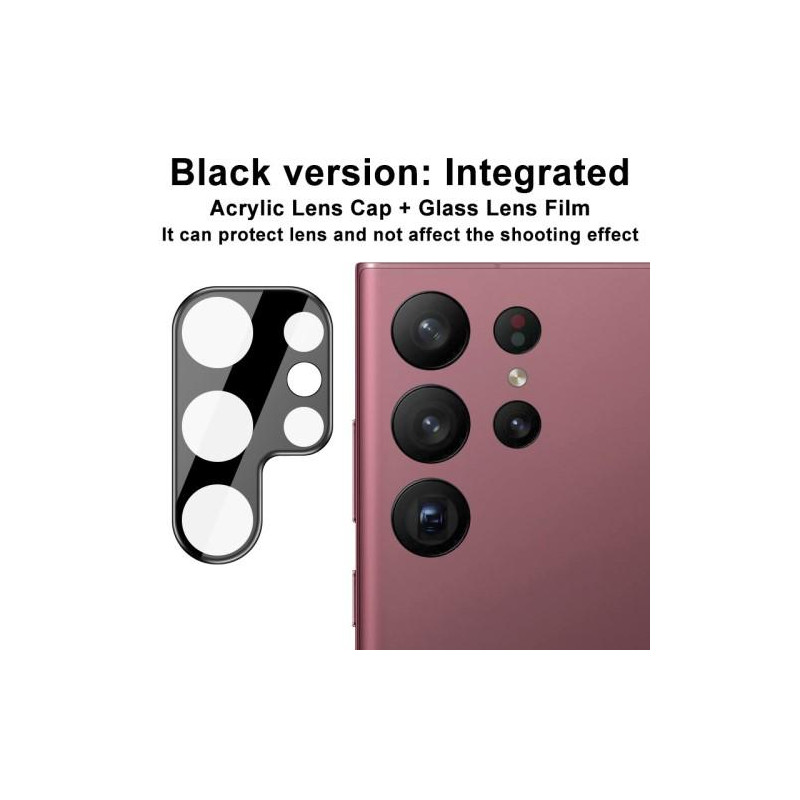 IMAK linsskydd i härdat glas + linsskydd i akryl för Samsung Galaxy S23 Ultra, skyddande kameralinsfilm (svart version) Anti-repor och slitstark och bättre seghet