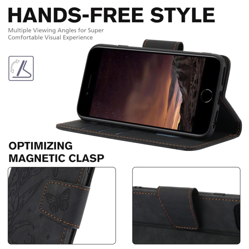 För iPhone 17e / 16e Fodral Fjäril Blomma Reptåligt Telefonfodral
