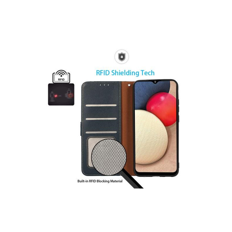 Detta fodral är tillverkat av litchi textur PU-läder som är slitstarkt, smidigt och mjukt. Slimfit TPU-material gör din telefon lätt att bära och enkel att installera. Den inbyggda kortplatsen blockerar effektivt signaler och skyddar ditt personliga kort från att svepa, även lätt att organisera dina kontanter.