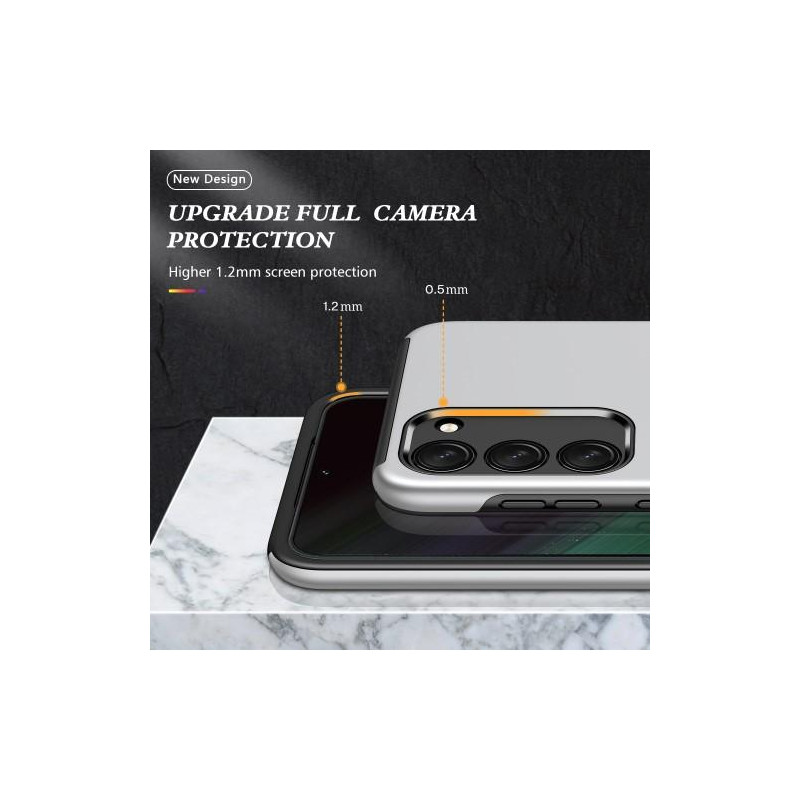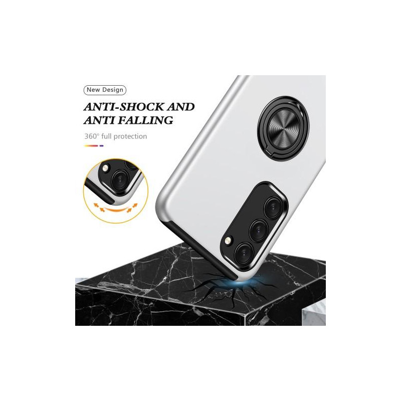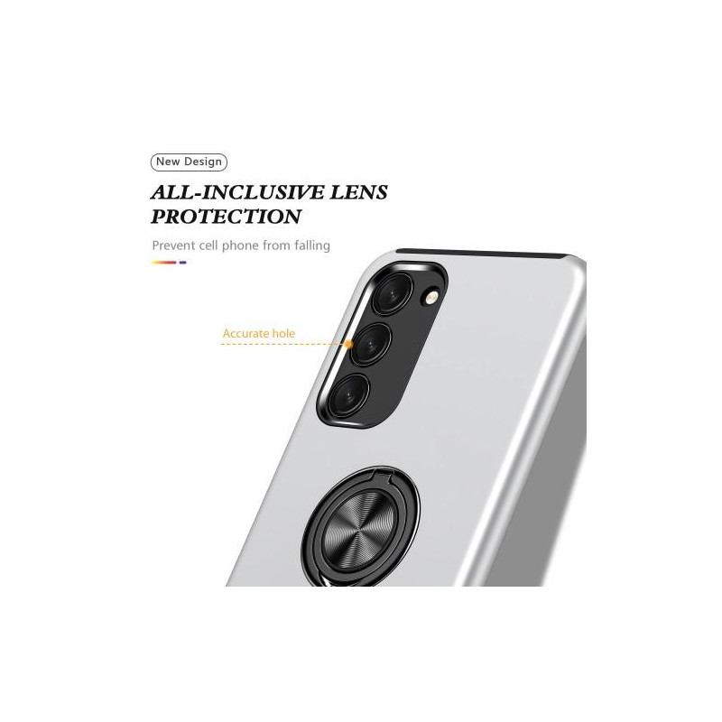 Hybridtelefonfodral heltäckande med ringformad kickstandsdesign för Samsung Galaxy S23+ - Silver