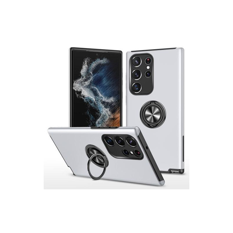 Samsung Galaxy S23 Ultra Hybrid skal med Finger Ring - Silver
