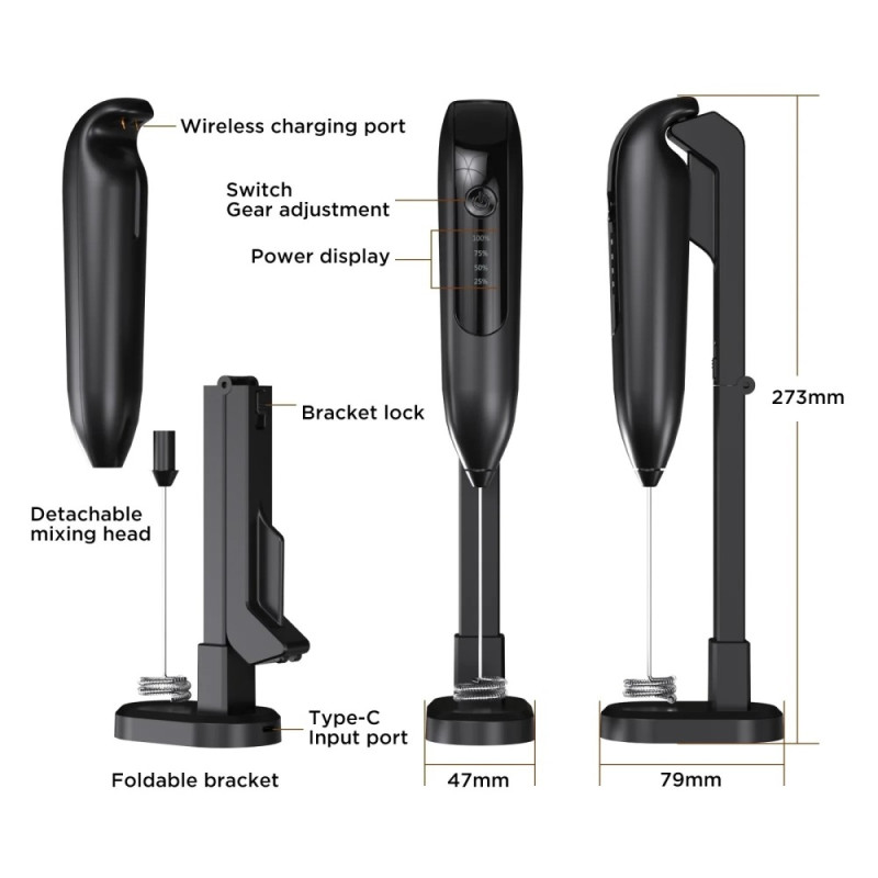 Mini Blender Mjölkskummare för Kaffe Handhållen Skummare Elektrisk Dryckesblandare - Svart