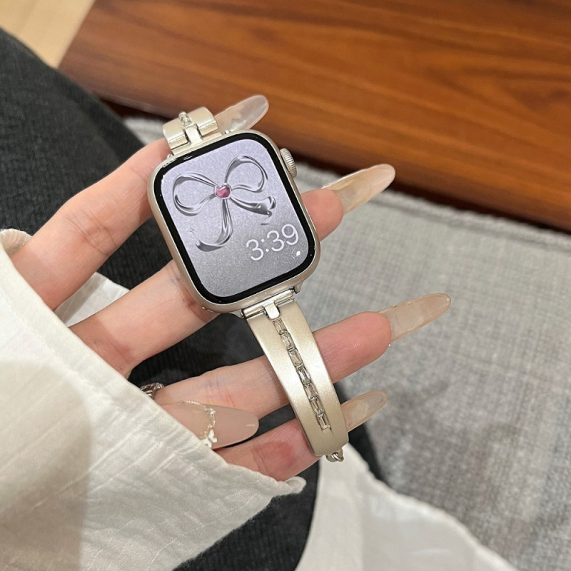 För A Watch Ultra 2 Ultra 49mm / 9 8 7 45mm / 6 5 4 SE (2023) SE (2022) SE 44mm / 3 2 1 42mm Watch Smycken Armband Alloy Armband - Starlight Klockremmen är tillverkad av högkvalitativt legeringsmaterial, high-end