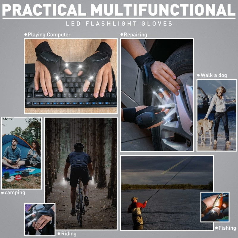 Bred tillämpning: Dessa ficklampshandskar är praktiska för dagligt bruk och perfekta för fiskare, prylentusiaster, nätverksingenjörer, rörmokare och olika utomhusaktiviteter som bergscamping, cykling, vandring och löpning