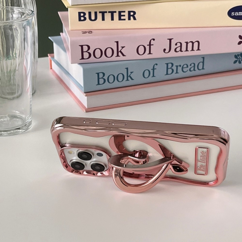 För iPhone 15 Pro Max Fodral Love Heart Kickstand TPU Elektropläterad Transparent Mobilfodral - Rosa