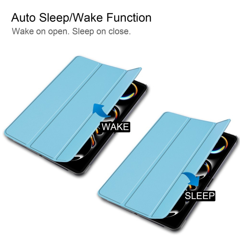 För iPad Pro 11 (2024) Fodral Auto Väcka / Sova Tri-fold Ställning Tabletthölje - LjusBlå Detta fodral kännetecknas av delikat PU-läder, kombinerat med ett PC-innerfodral, fin kvalitet och ett frestande utseende. Tri-fold ställningsdesign ger en lämplig vinkel för dig att läsa, skriva och titta på videor, vilket förenklar ditt arbete och liv. Mikrofiberfoder är repbeständigt och smutsavvisande och skyddar din tablets skärm.