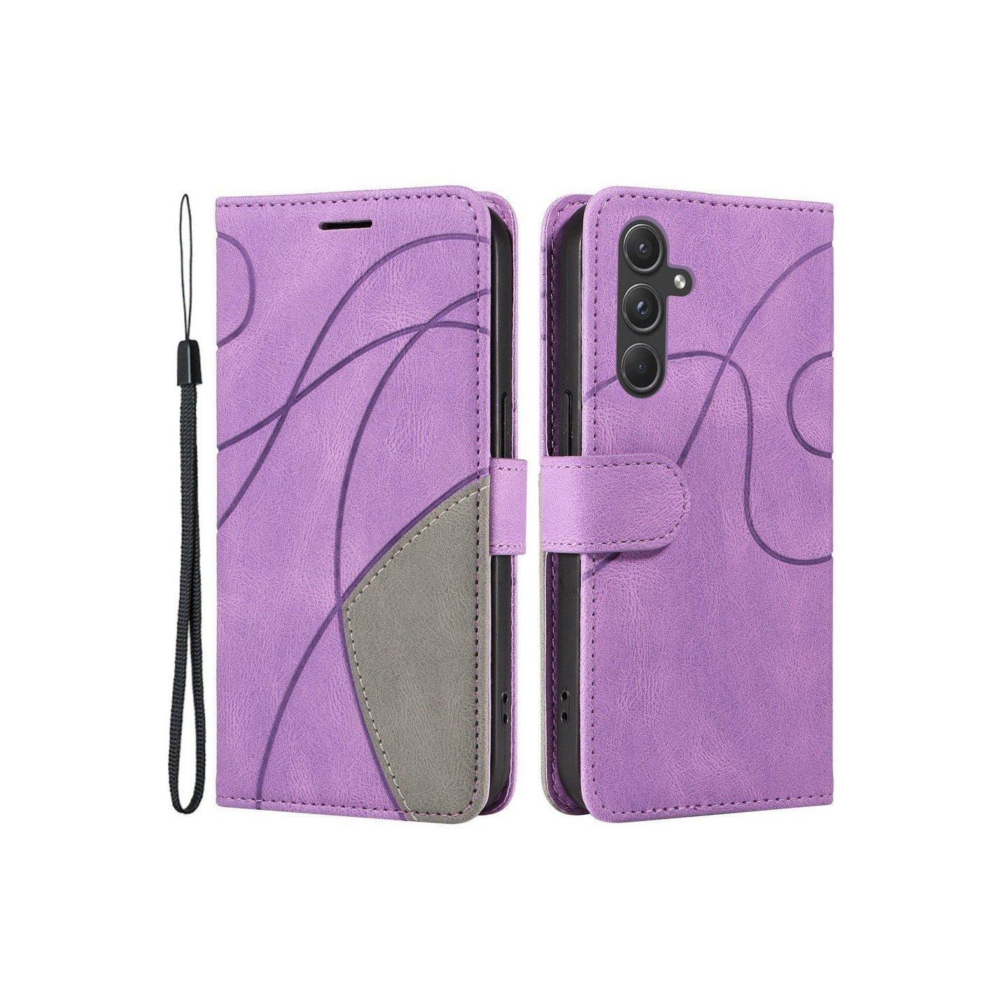 För Samsung Galaxy A55 KT Series-1 Dubbelfärgad fodral med rem - Lila
