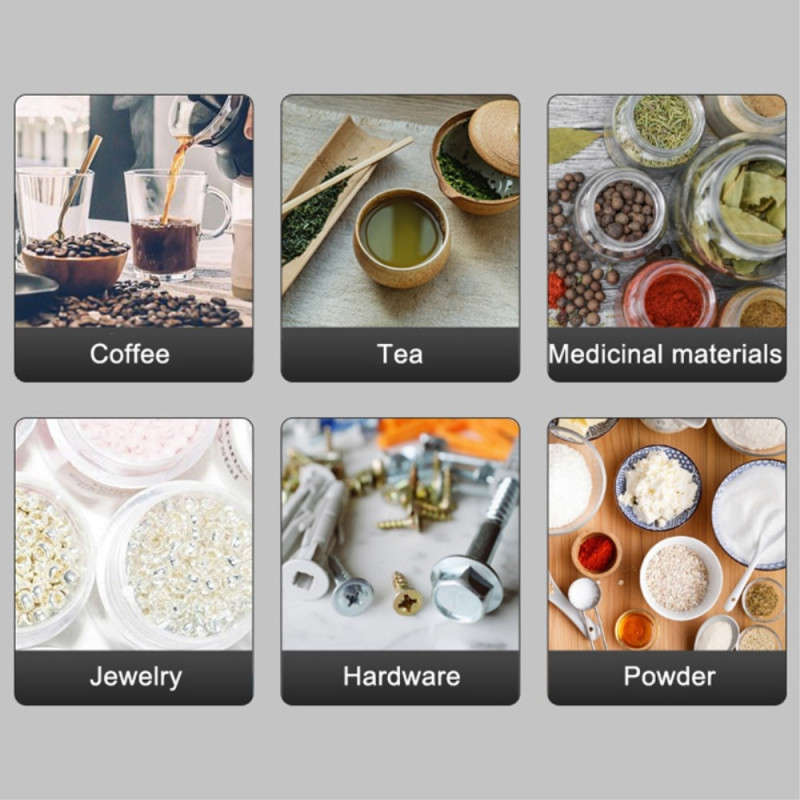 Kan användas för smycken, te, kaffe, vägning, medicinska material, hårdvara, pulvervägning