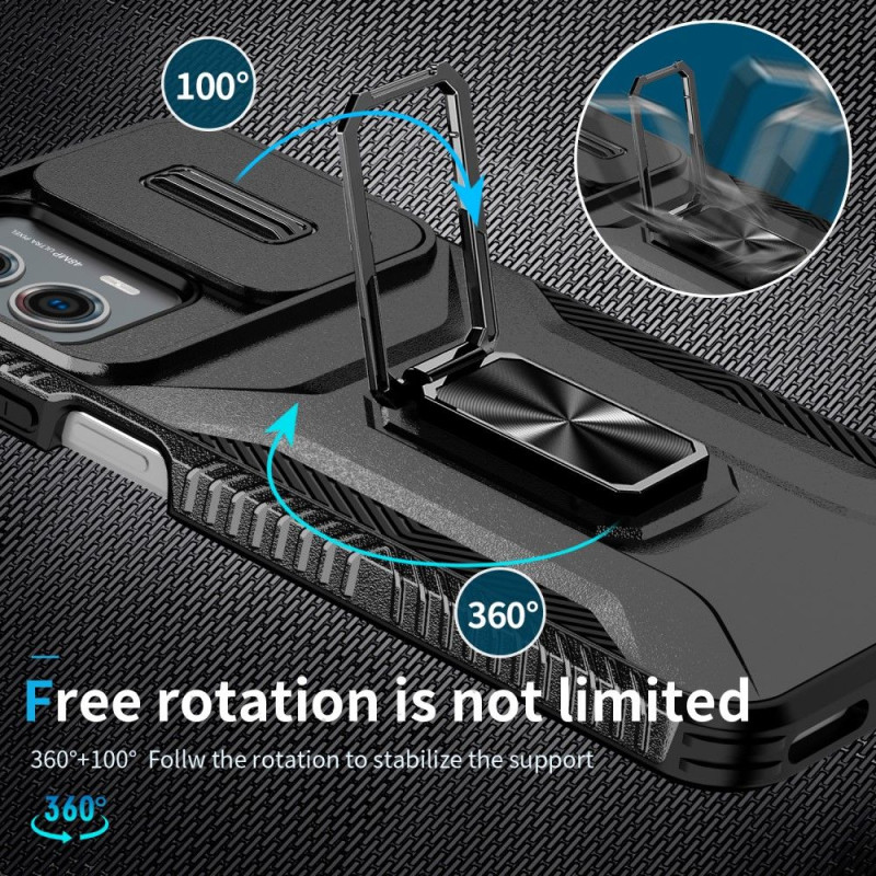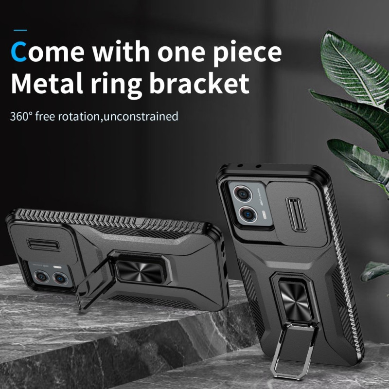 För Motorola Moto G 5G (2023) / Moto G (2024) Kickstand Fodral Telefonskydd Skjutlinsskydd - Svart Tillverkad av premium PC + TPU-material