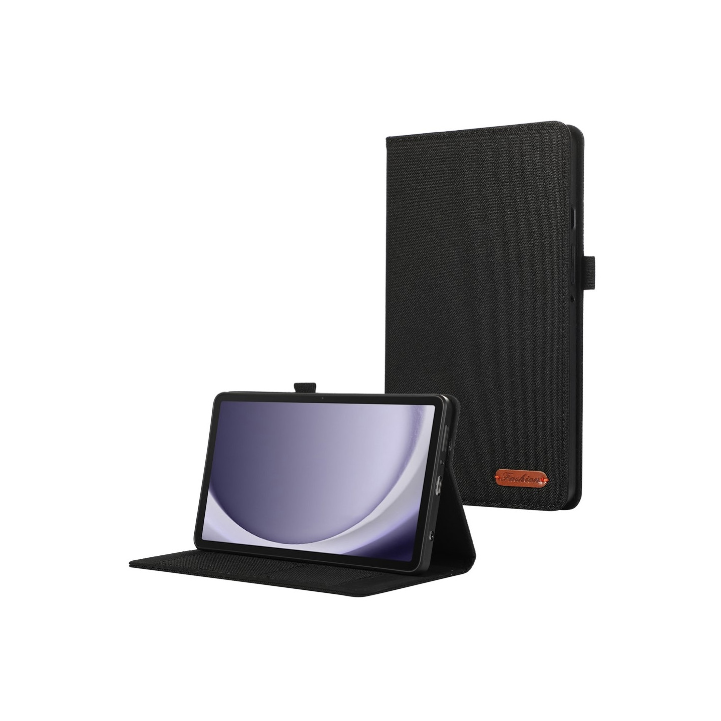 Samsung Galaxy Tab A9+ Vikbart stativ Korthållare Skyddsfodral Tygtextur - Svart