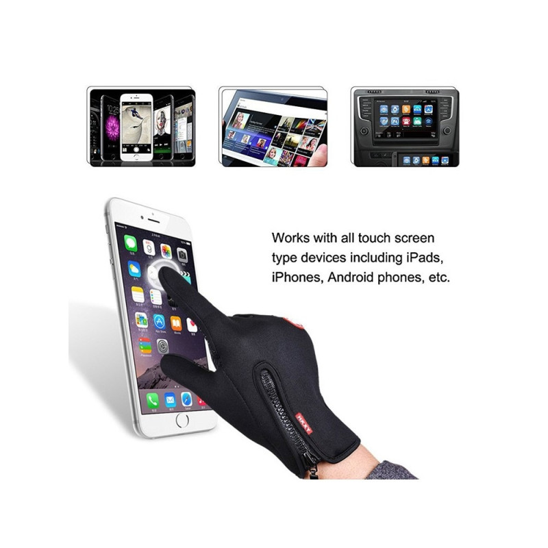 1 par vindtäta pekskärmshandskar med halkfritt grepp och varmt foder för skidåkning och cykling - Svart / S