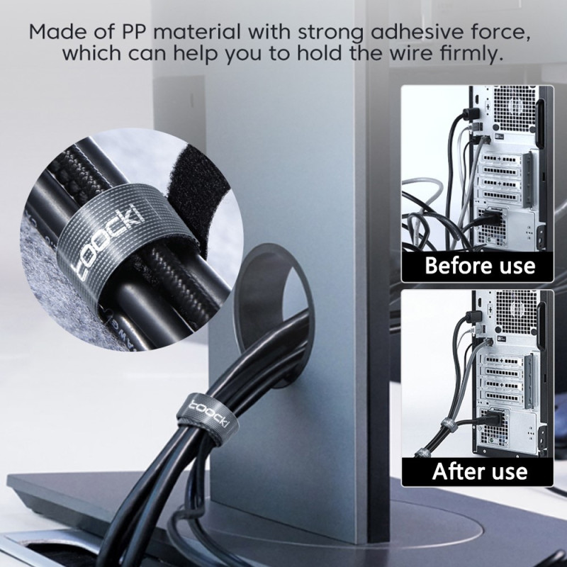 TOOCKI TQ-LX01 5m Mobiltelefon Datakabel Organizer Klippbara kabelhanteringsremmar Självhäftande sladdband - Svart Kabelarrangören är snyggt förvarad, vilket gör huset mer städat