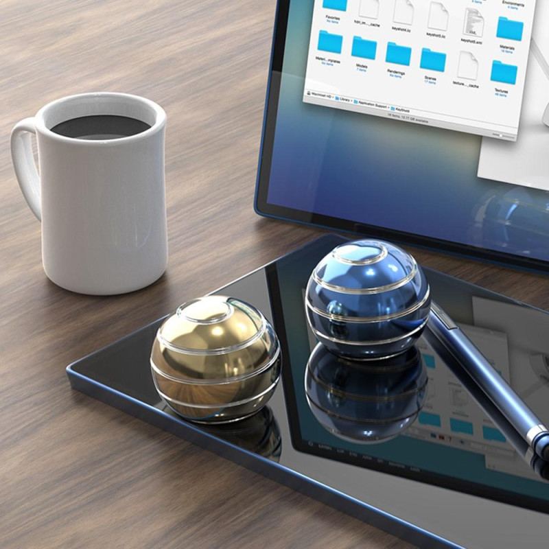 Den är designad för att snurra på alla skrivbord eller plan yta. Den solida kroppen och släta finishen gör den mycket trevlig att interagera med. Den snurrar tyst så att du inte stör någon i närheten