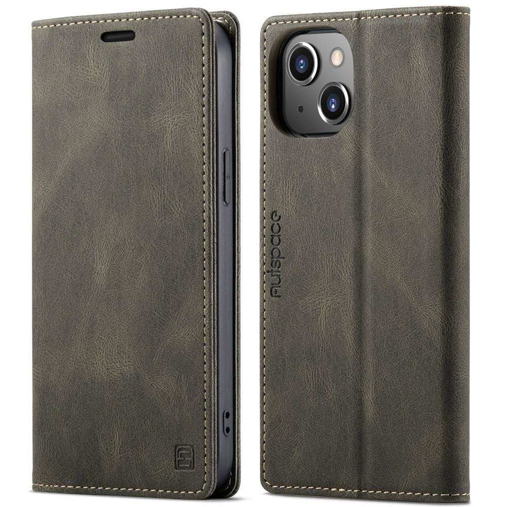 AUTSPACE A01 Retro tegnebog taske til iPhone 13 - Kaffe