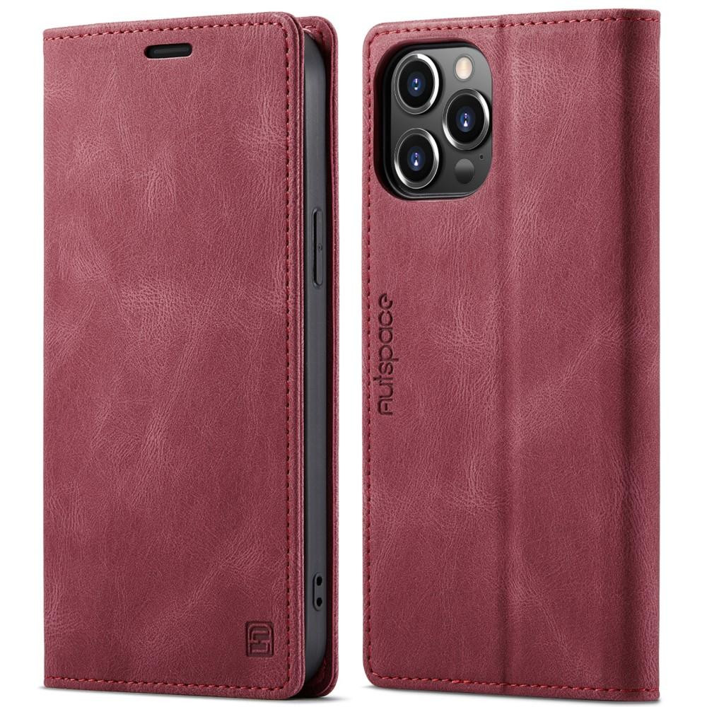 AUTSPACE A01-serie Premium Retro Matte PU-læder flip-stativbetræk med RFID-blokerende magnetisk lukning til iPhone 13 Pro Max 6,7 tommer - Rød