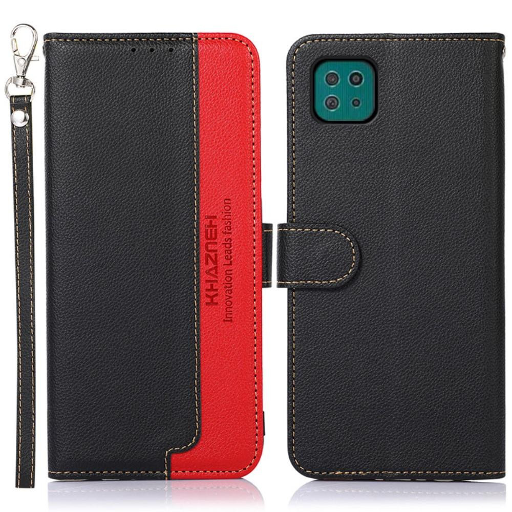 KHAZNEH stilig pung-etui til Samsung Galaxy A22 5G - rød-svart Full tilgang til