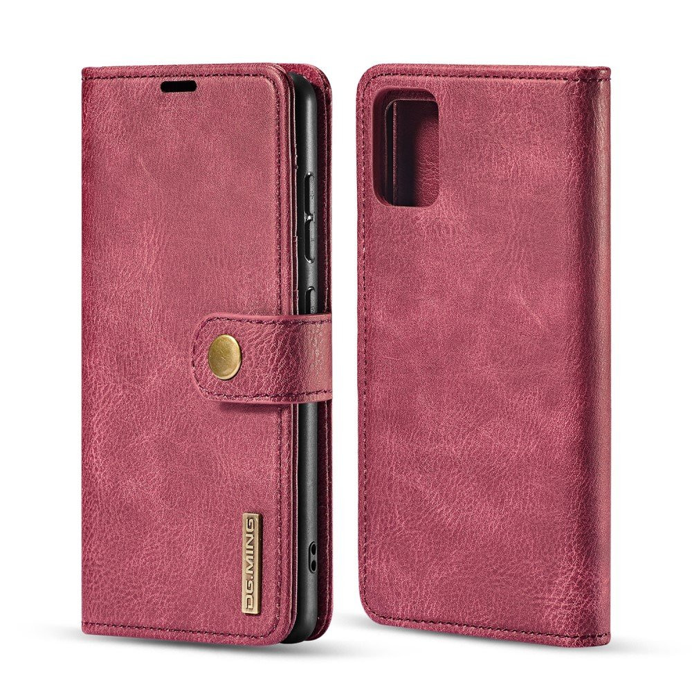DG.MING Aftagelig 2-i-1 delt lædertegnebog telefonskal + PC-bagtaske til Samsung Galaxy A71 - Rød Denne taske har 2-i-1-design med et delt lædertegnebogscover og en aftagelig læderbelagt plastikbagside, som kan fastgøres sammen ved magnetisme. Materialer af høj kvalitet med udsøgt håndværk sikrer et elegant udseende og behagelig håndfølelse. • Op@@ • delt læderpung: Tre kortpladser og en pengelomme Af • tagelig plastik bagkasse, kan også bruges alene