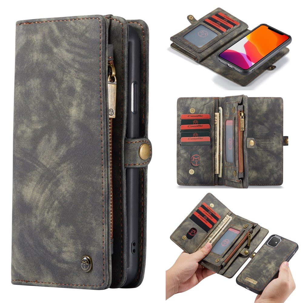 CASEME til iPhone 11 Retro Split Lærcover/Pung-etui Flere rom - Grå Luksuriøs komplett lommebok som du samtidig kan lagre telefonen i. Elegant design som du kan lagre opptil 9 kort i. Glidelåsrom
