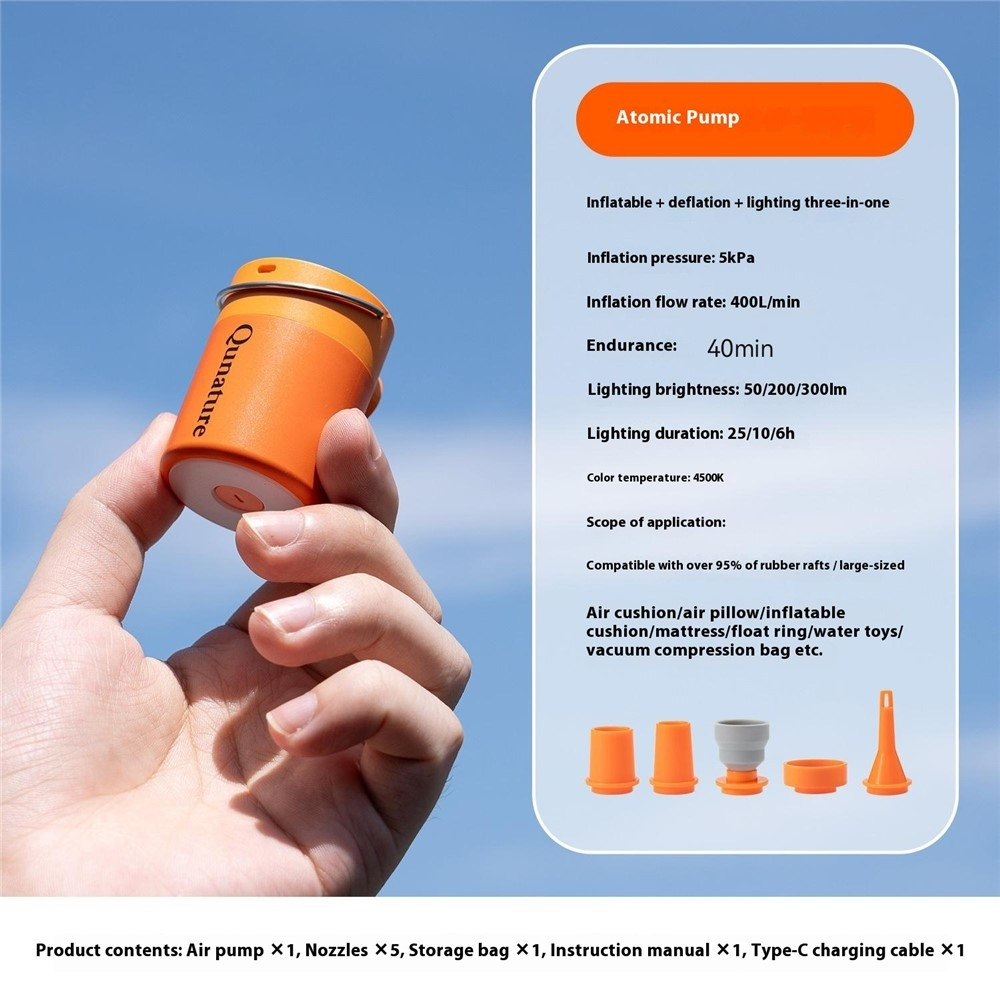 QUNATURE Mini Elektrisk Luftpumpe Magnetisk Camping Hængelampe Svømmering Luftmadras Oppustning - Orange