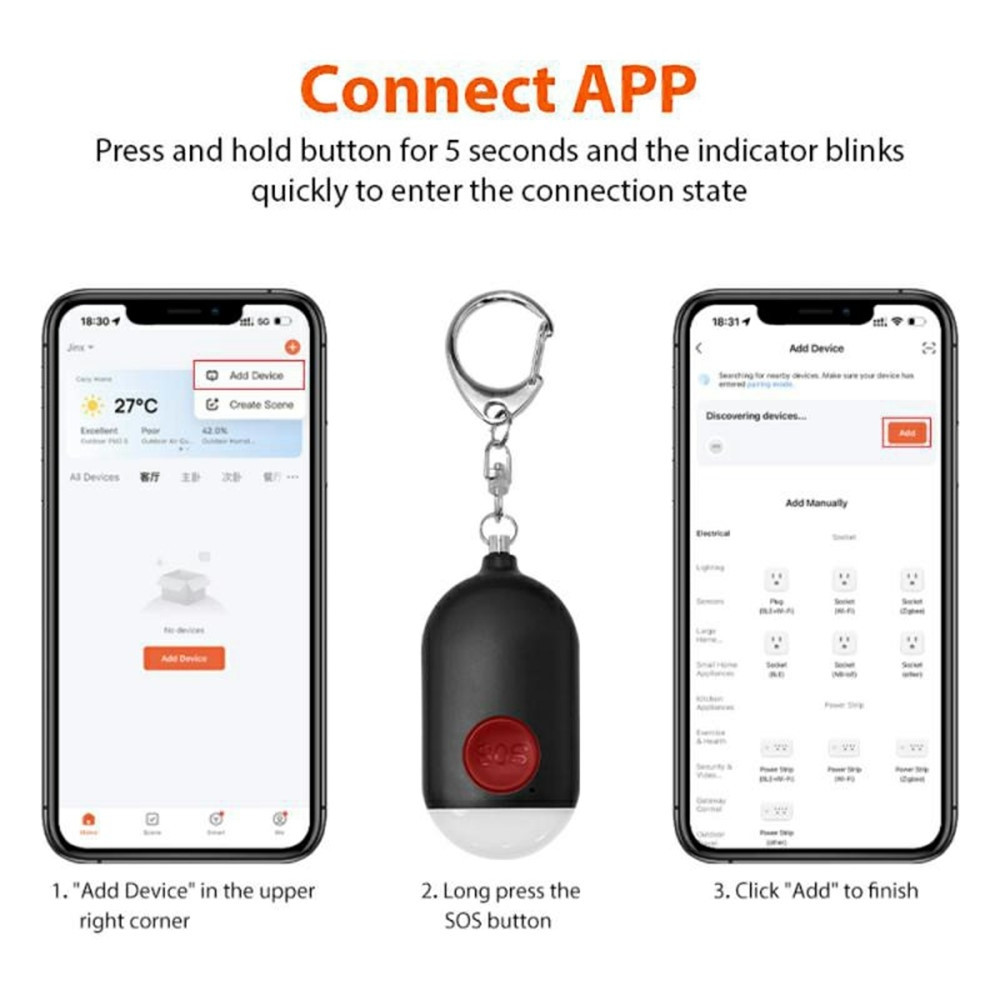 【Højdecibelalarm】Udsender en kraftig alarmlyd på 130 dB i op til 25 minutter, hvilket sikrer, at dit nødopkald kan høres på afstand.