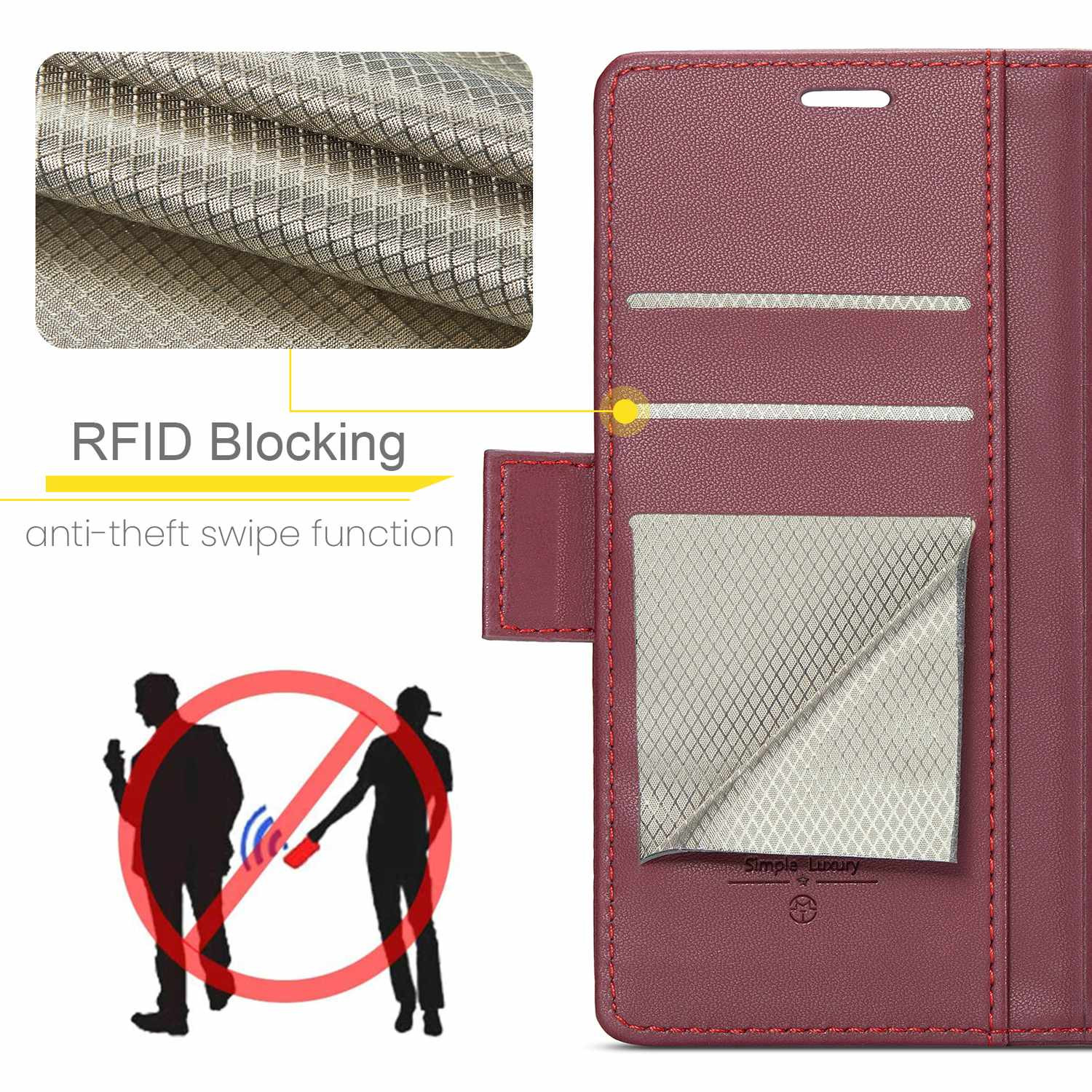 Kontant- og Kortslots Design: Designet med 2 kortslots og et kontant rum, hvilket gør dit liv mere simpelt og bekvemt