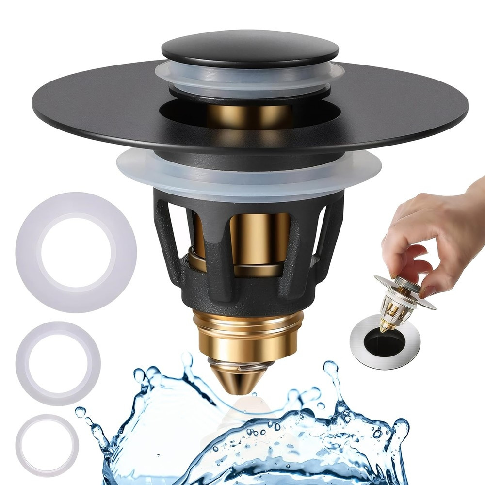 Afløbsprop til vasken, universal trykknap, pop-up-prop, anti-tilstopning, hårfanger - matsort
