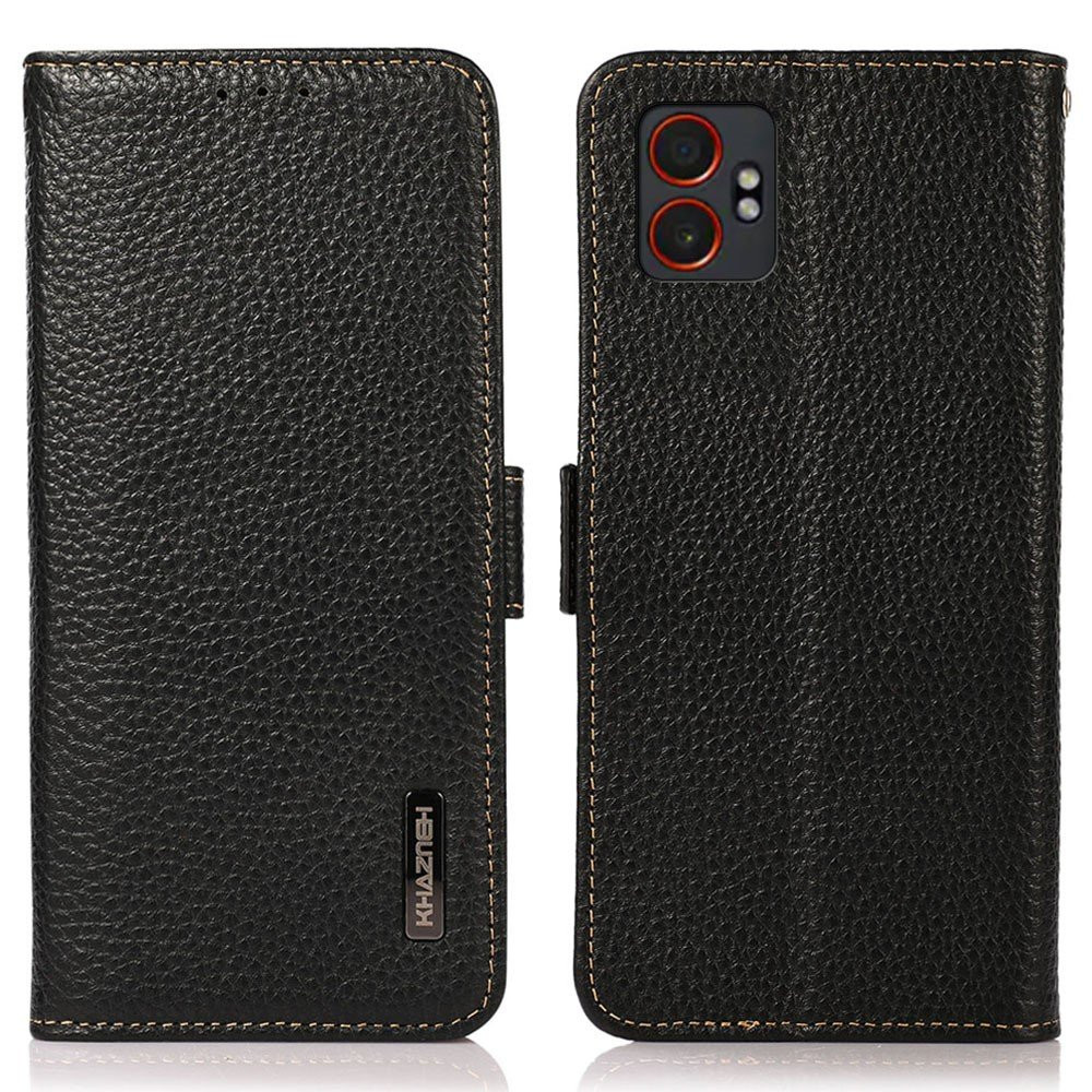 KHAZNEH Til Samsung Galaxy XCover7 Pro Telefonetui i Ægte Koskind Flip Cover - Sort