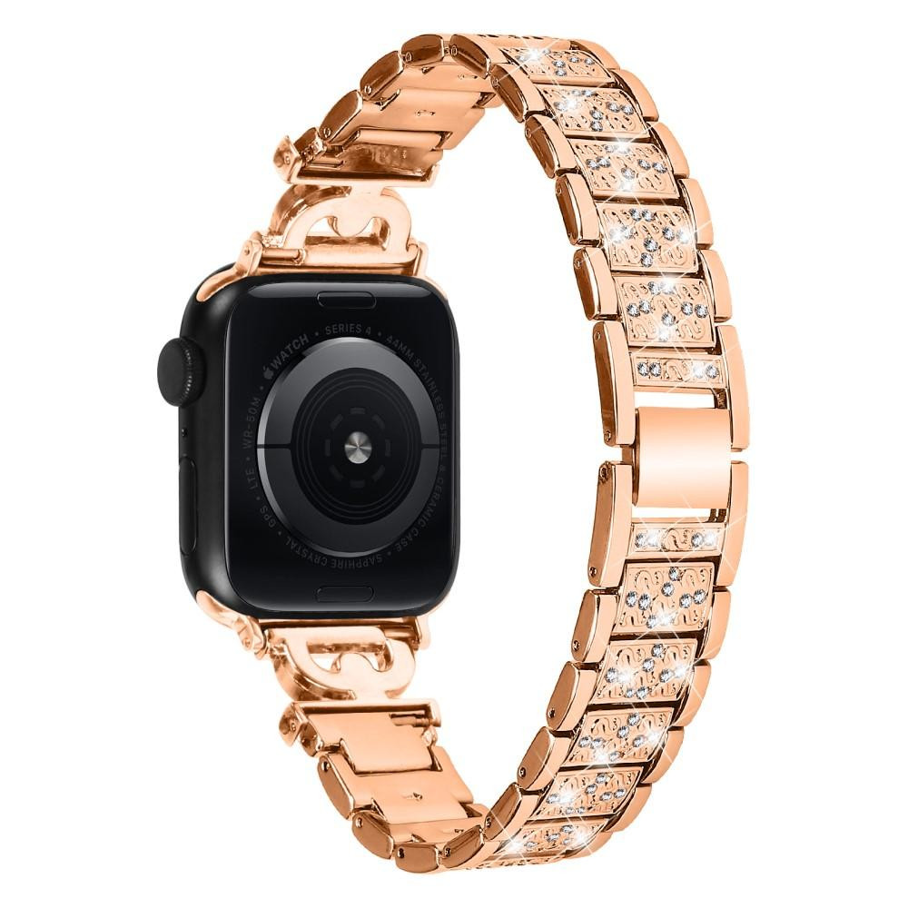 Urrem til Apple Watch Ultra 49mm/Series 8 7 45mm/Series 6 5 4 SE (2022) SE 44mm/Serie 3 2 1 42mm, 3-perle Rhinestone Decor Rustfri stålrem - Rose Gold Urremmen er lavet af rustfrit stålmateriale, slidstærk og slidstærk Med skinnende rhinestones dekoreret, unik og stilfuld, personliggør dit smartwatch med dette raffinerede udskiftningsarmbånd En ideel udskiftning af urrem til dit gamle, ødelagte design adgang til alle betjeningselementer, knapper, sensorer og funktioner