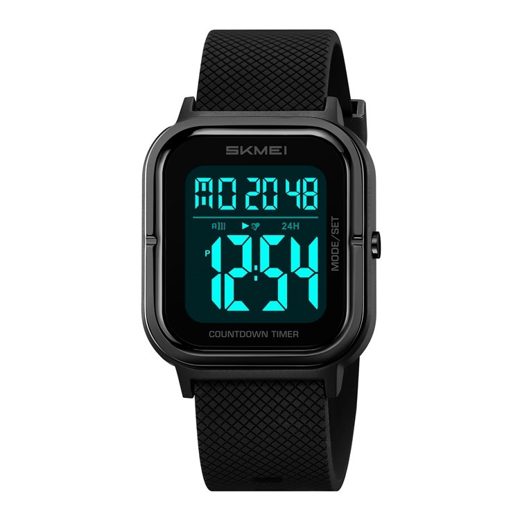 SKMEI 2316 50m Vandtæt Digitalur Firkantet Elektronisk Armbåndsur med EL-baggrundsbelysning og Stopur - Sort+Sort / TPU-rem