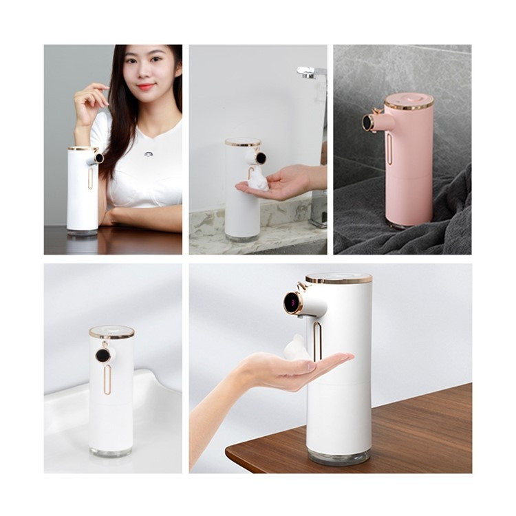 D31 Smart Berøringsfri Sæbepumpe Automatisk Sensor Håndvask Elektrisk Skumvasker med Justerbart Niveau/Indetemperatur Digitalt Display til Badeværelse Køkken - Pink