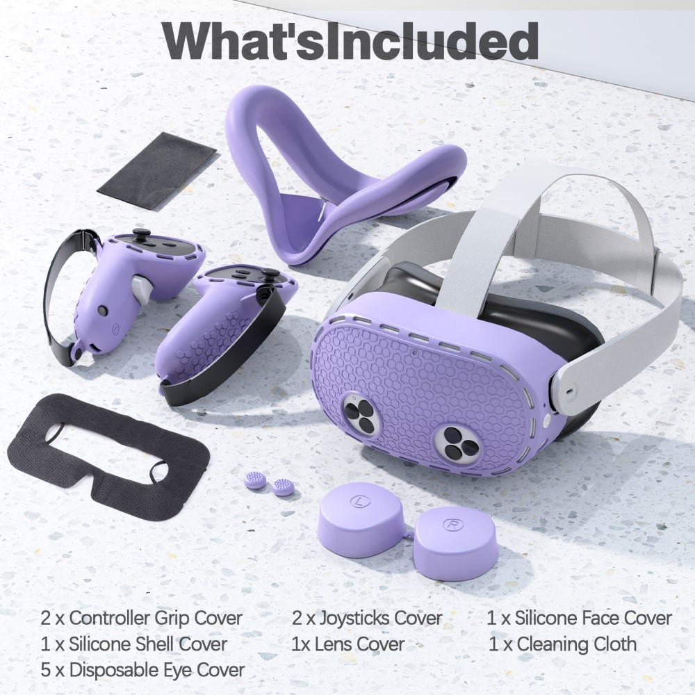 Til Meta Quest 3S silikonetilbehørssæt med VR-headsetcover / kontrolgreb / ansigtsmaske - Lilla