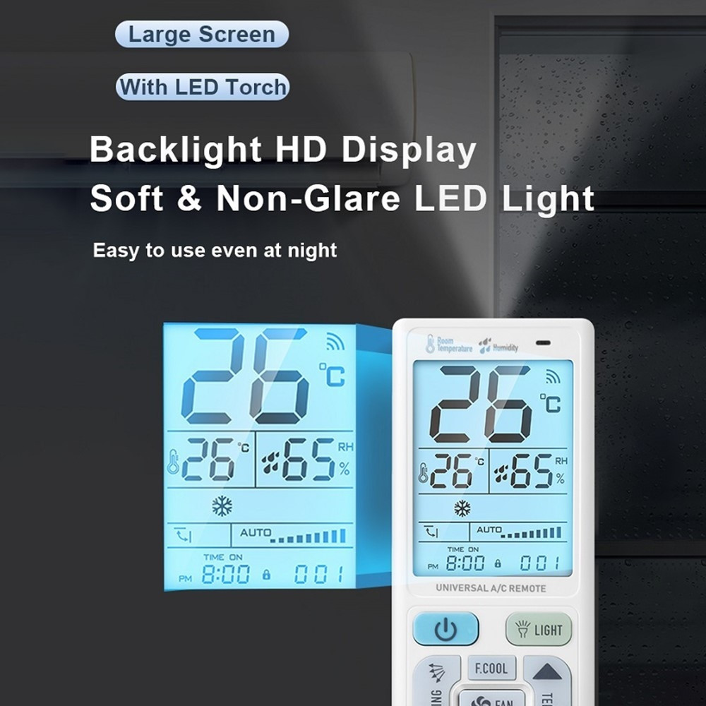 【Omfattende kompatibilitet】Fyldt med en omfattende database med fjernbetjeningskoder til klimaanlæg, kompatibel med både nye og gamle klimaanlæg.