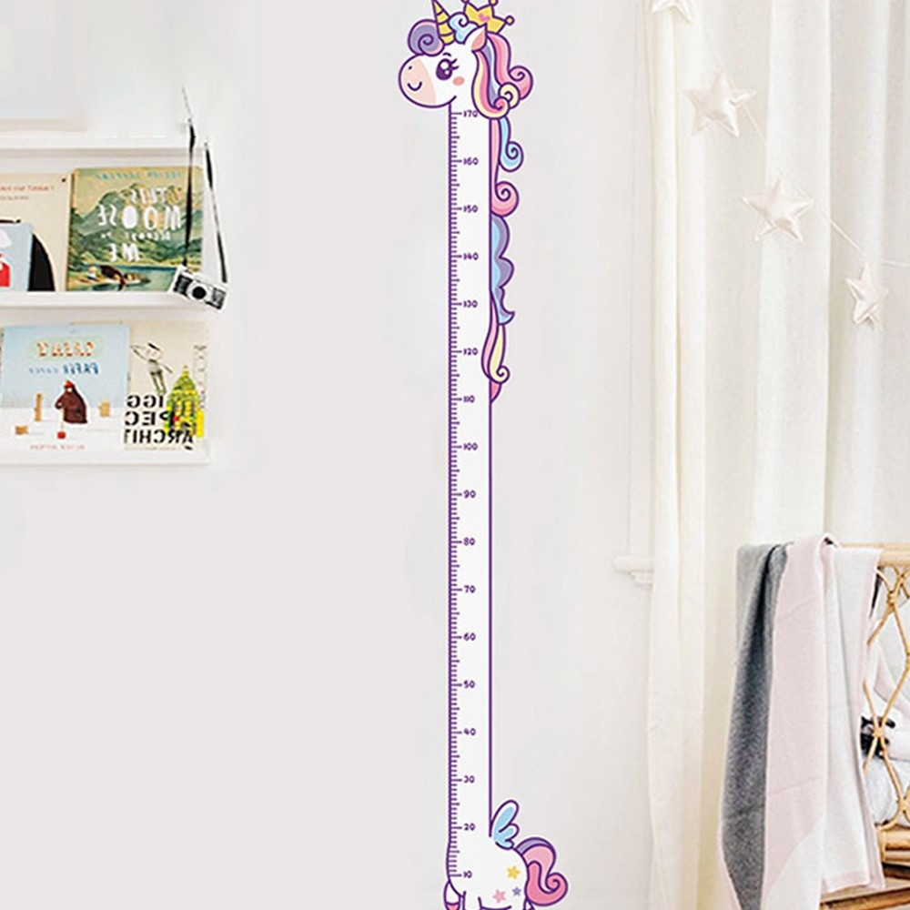 Tegneseriehøjdekurve vægklistermærke, selvklæbende vægklistermærke til soveværelse og stue - Regnbuehest