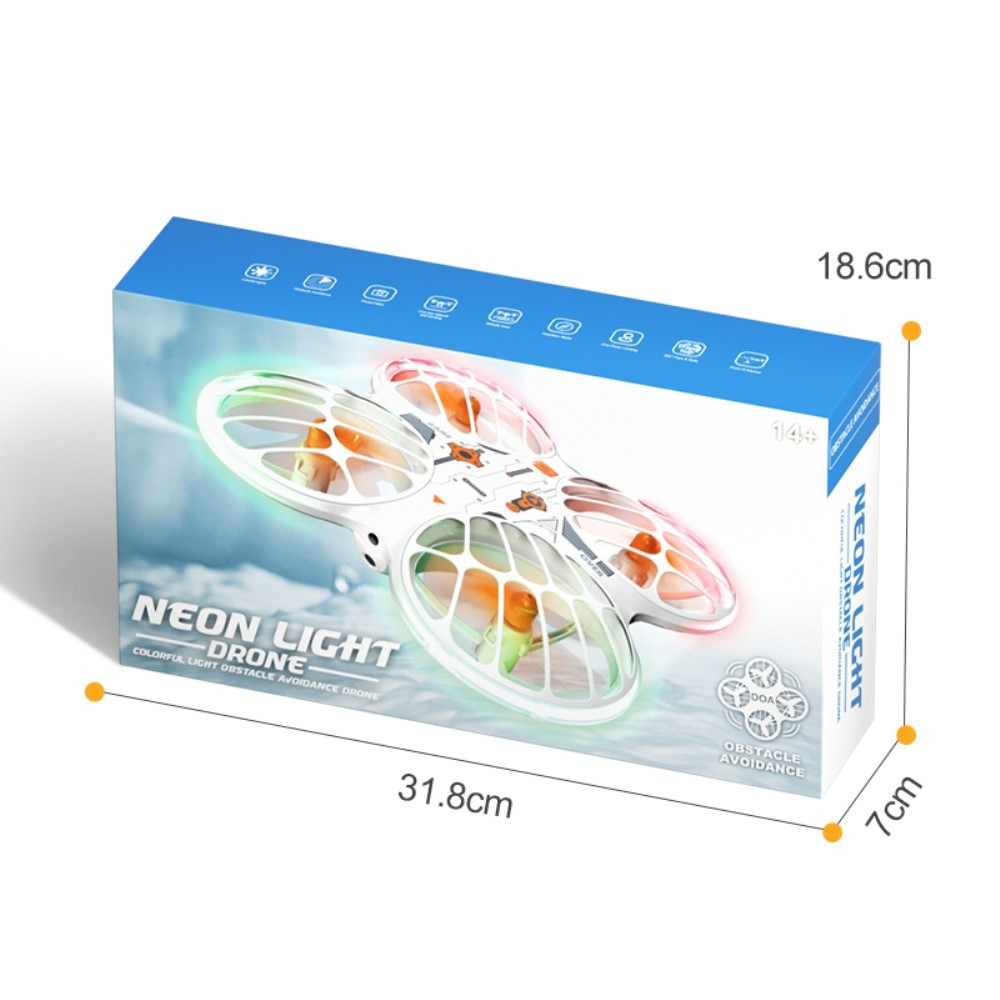 【Neonlysdesign】 Iøjnefaldende neonlys smyger sig rundt om dronens krop og skaber en fantastisk visuel effekt under flyvning.