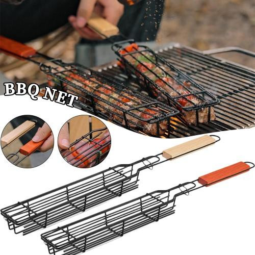 Udendørs grillkurv Bærbart grillbur med træhåndtag Picnicgrillnet Campingudstyr B ærbart og let at bruge: Grillkurven er bærbar, nem at bruge og rengøre, velegnet til udendørs grill Fødevarekvalitet