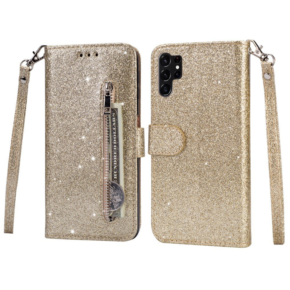Til Samsung Galaxy S25 Ultra Stående Glittercover med Lynlåslomme