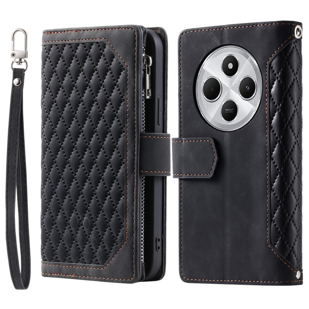 Til Xiaomi Redmi 14C Zipper Wallet Case Rhombus Telefoncover - Sort